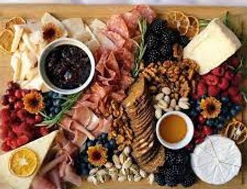 Classic cheese board served with shaved prosciutto, soppressata, bresaola and truffle chicken liver pate marinated olives, pepperoncini, toasted almonds, dried fruit whole grain mustard, fig preserves, toasted baguette, and crackers.